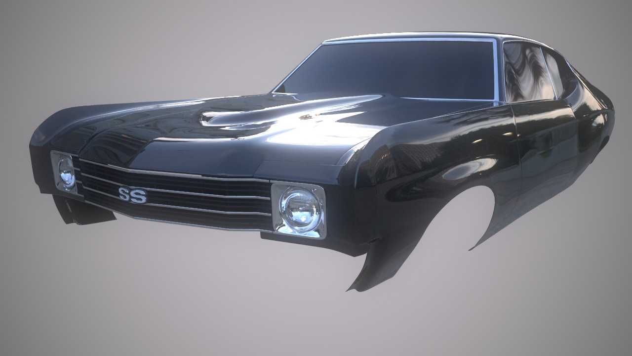 Hey, been working on this ’72 Chevrolet Chevelle Super Sport in bits and pieces as I find free time. Just realized I haven’t posted anything on the blog so I will now do a Chevelle WIP dump right here. Now. Boom. There it is. Working on the interior now, and planning to put together something fun once I get the time really dig into the animation / VFX end of the project.